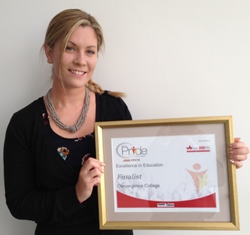 Rachel seen in the photo above showing an Pride in MK 'Finalist' award for one of our accredited companies - Convergence College.